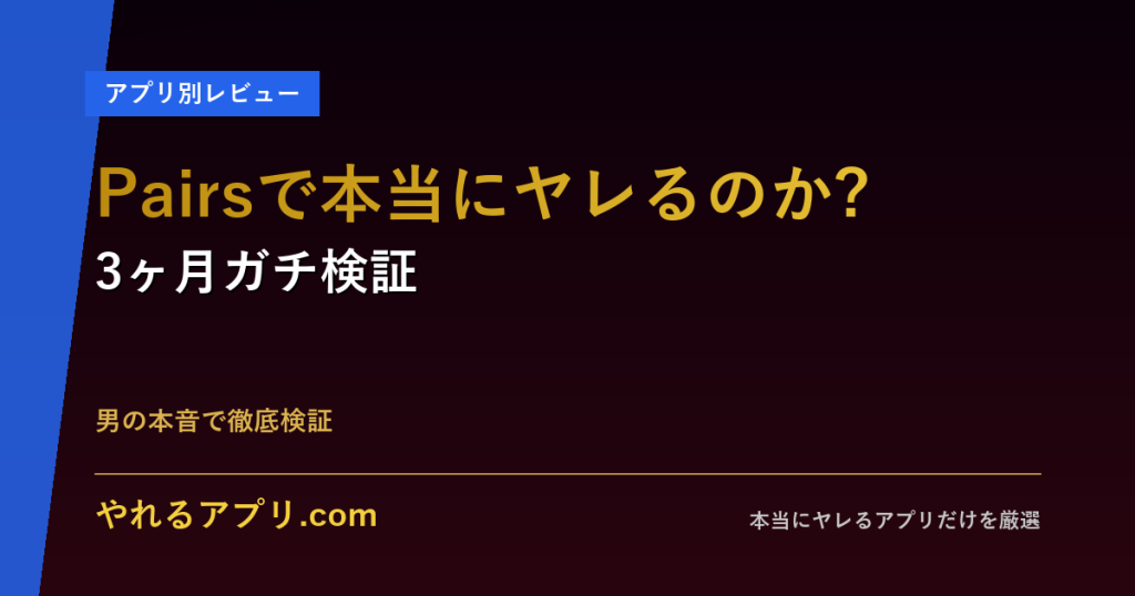 Pairs(ペアーズ)で本当にヤレるのか?3ヶ月ガチ検証した結果を男の本音で解説。料金・会員数・ヤレる率・体験談まで完全網羅。 -