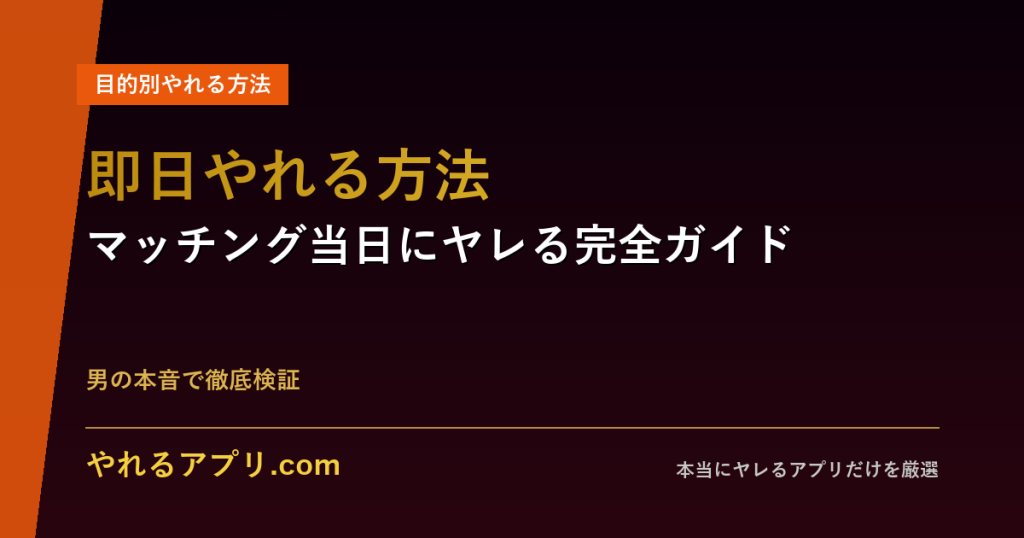 出会い系で即日ヤレる方法を完全解説。登録から当日ベッドインまでの具体的ステップ、使うべきアプリTOP3、プロフィール設計、メッセージテンプレまで網羅。 -